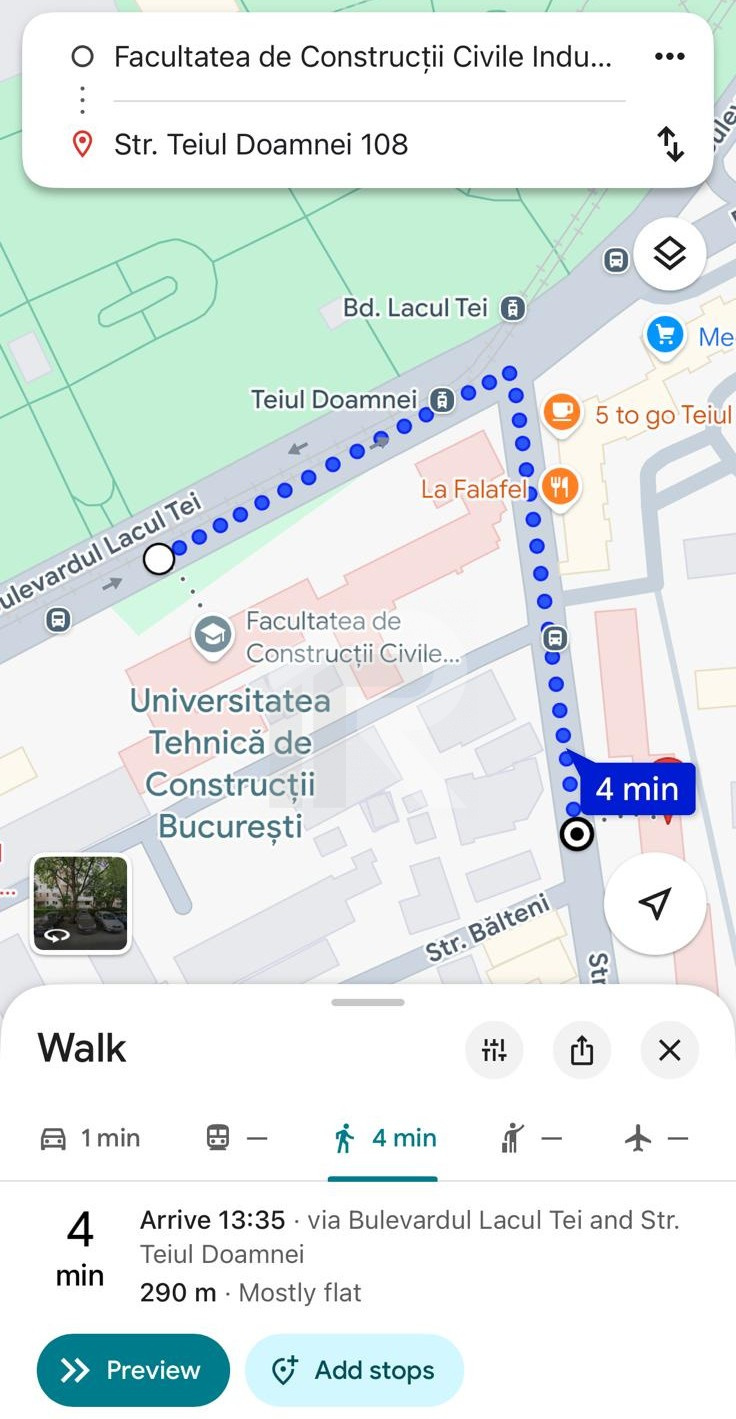 Strada Teiul Doamnei nr. 108, bloc 15, scara 2 – una dintre cele mai bine cotate zone din Sector 2, cu acces rapid către centru, campusuri universitare și zone comerciale.