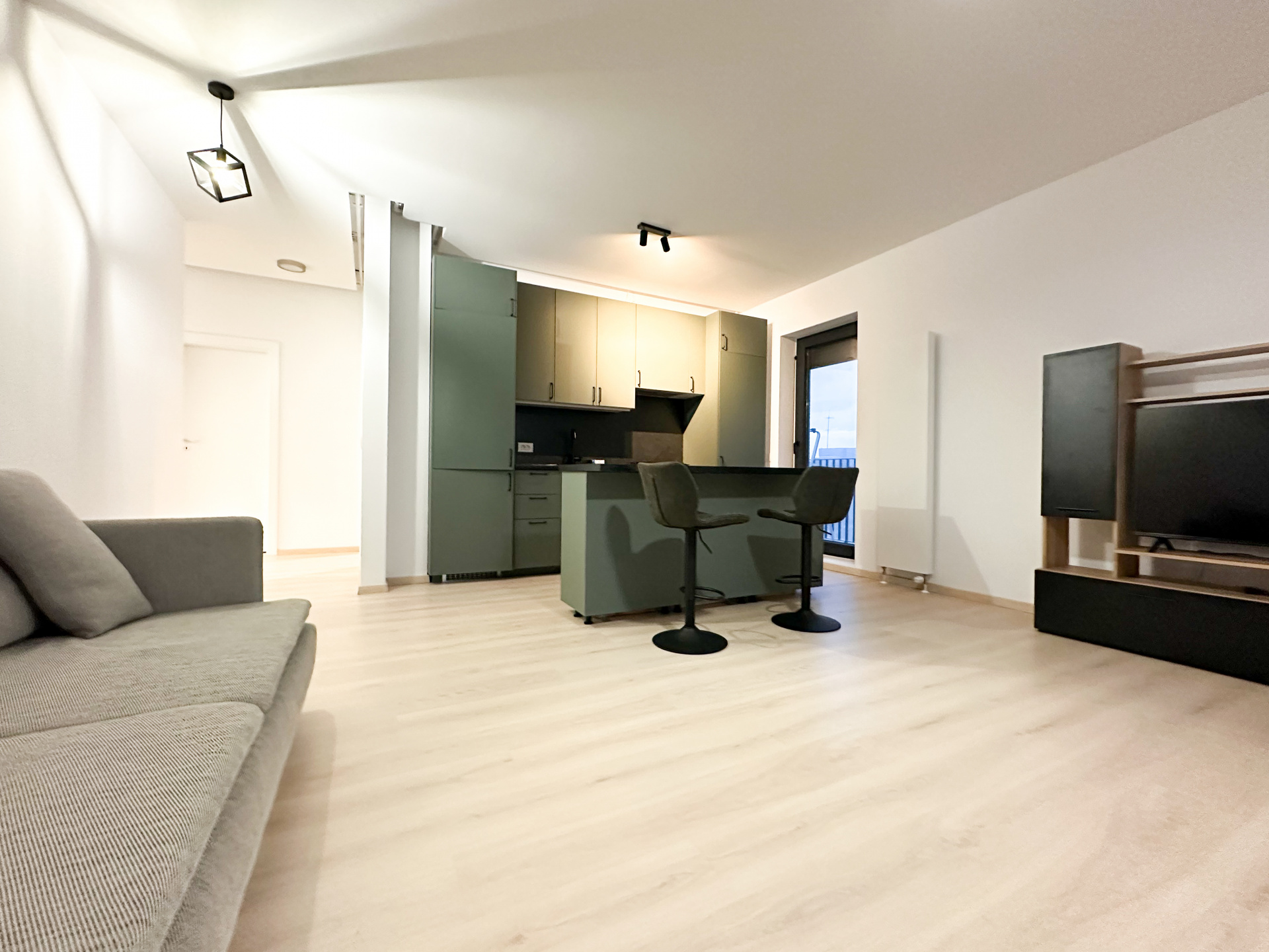Open space-ul cu bucătăria creează acea senzație de libertate pe care apartamentele compartimentate nu o pot oferi niciodată. Te miști fluid între gătit, conversație și relaxare – totul se întâmplă natural, fără pereți care să îți taie ritmul vieții. Cele 2 aparate de aer condiționat îți garantează confortul indiferent de anotimp. Rulourile exterioare la toate geamurile – cele de la living chiar electrice – îți dau controlul total asupra luminii și intimității.