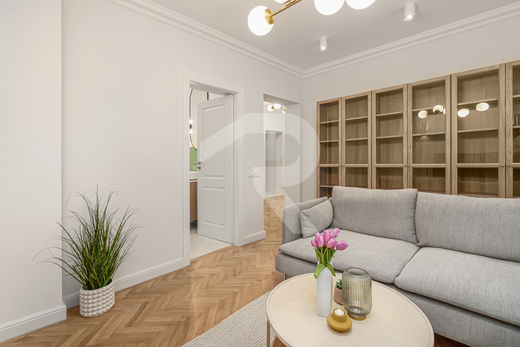 Livingul radiant te întâmpină cu o canapea confortabilă, o bibliotecă plină de povești, o măsuță de cafea cochetă și un TV smart, creând o atmosferă ideală pentru relaxare și distracție. Dormitorul matrimonial, dotat cu un pat dublu de 160 cm și un dulap generos pentru haine, îmbie la odihnă și confort. Dormitorul mic, încă nemobilat, oferă flexibilitate și poate fi personalizat în funcție de nevoile viitorului chiriaș.